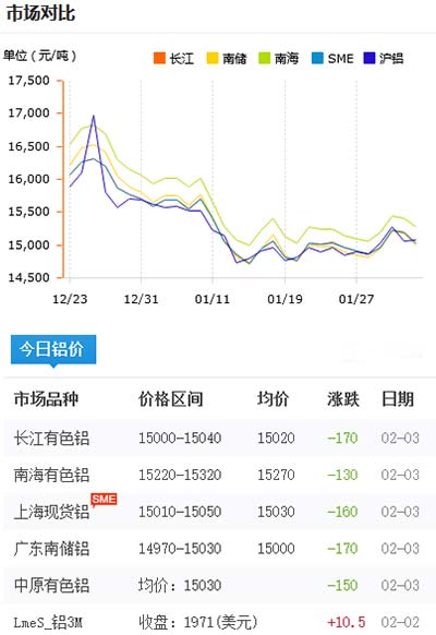 鋁錠價格今日鋁價2021-02-03