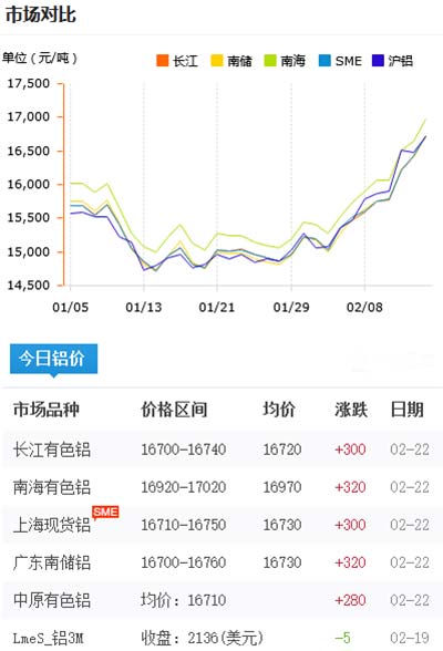鋁錠價(jià)格今日鋁價(jià)2021-02-22