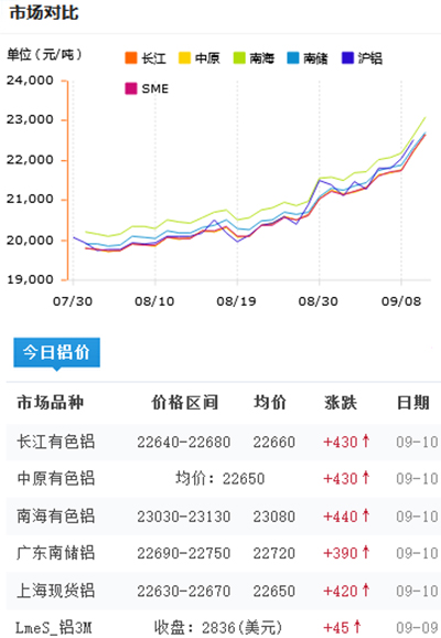 鋁錠價(jià)格今日鋁價(jià)2021-09-10
