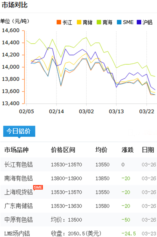 鋁錠價格今日鋁價2018-3-26