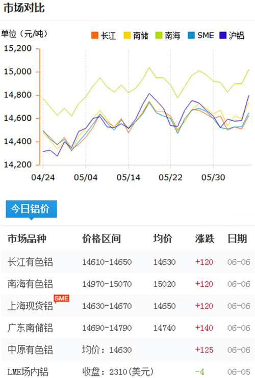 鋁錠價格今日鋁價2018-6-6