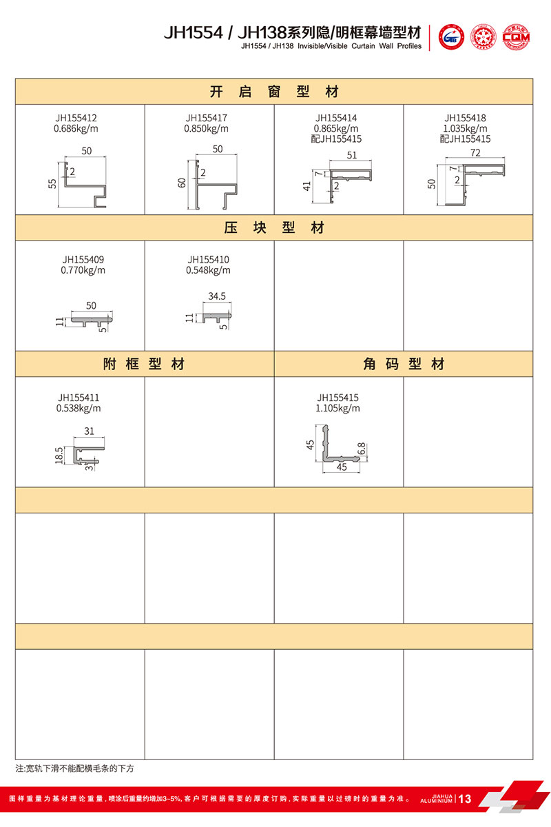 鋁型材規(guī)格型號:JH1554/JH138 B