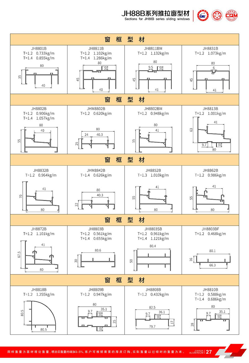 鋁型材規格型號:JH88B