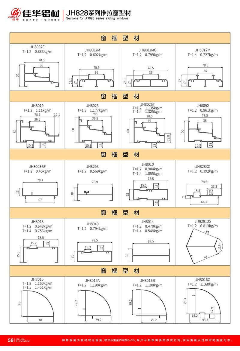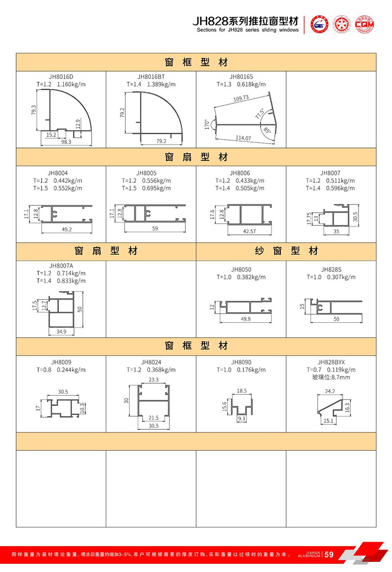 推拉窗系列 平開窗系列 平開門系列 斷橋隔熱系列 幕墻系列 通用型材系列